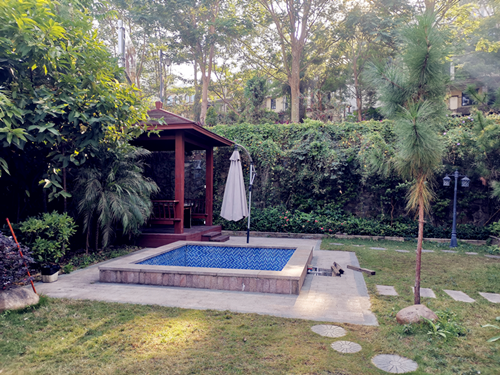 庭院也是非常惹人喜歡,除了溫泉池,還有專供燒烤的亭子,看起來是不是很想擁有一套。反正,小編是很想擁有一套