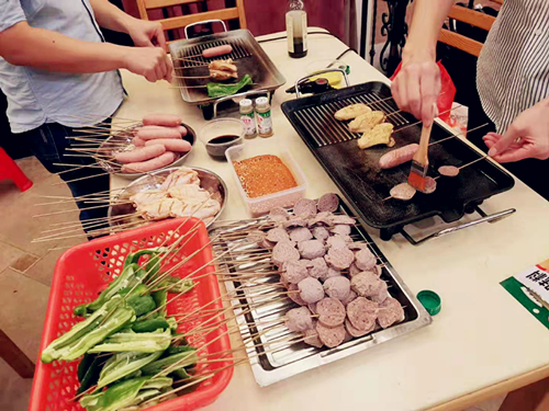 大家娛樂完后需要補充點能量,這不,負責(zé)燒烤的小伙伴們已經(jīng)開始忙起來了,正宗潮汕牛肉丸是本次燒烤中的surprise,超美味,有木有很專業(yè)?有木有流口水?